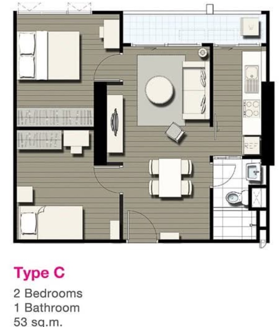 🔳ห้องนอน 2 ห้องน้ำ 1